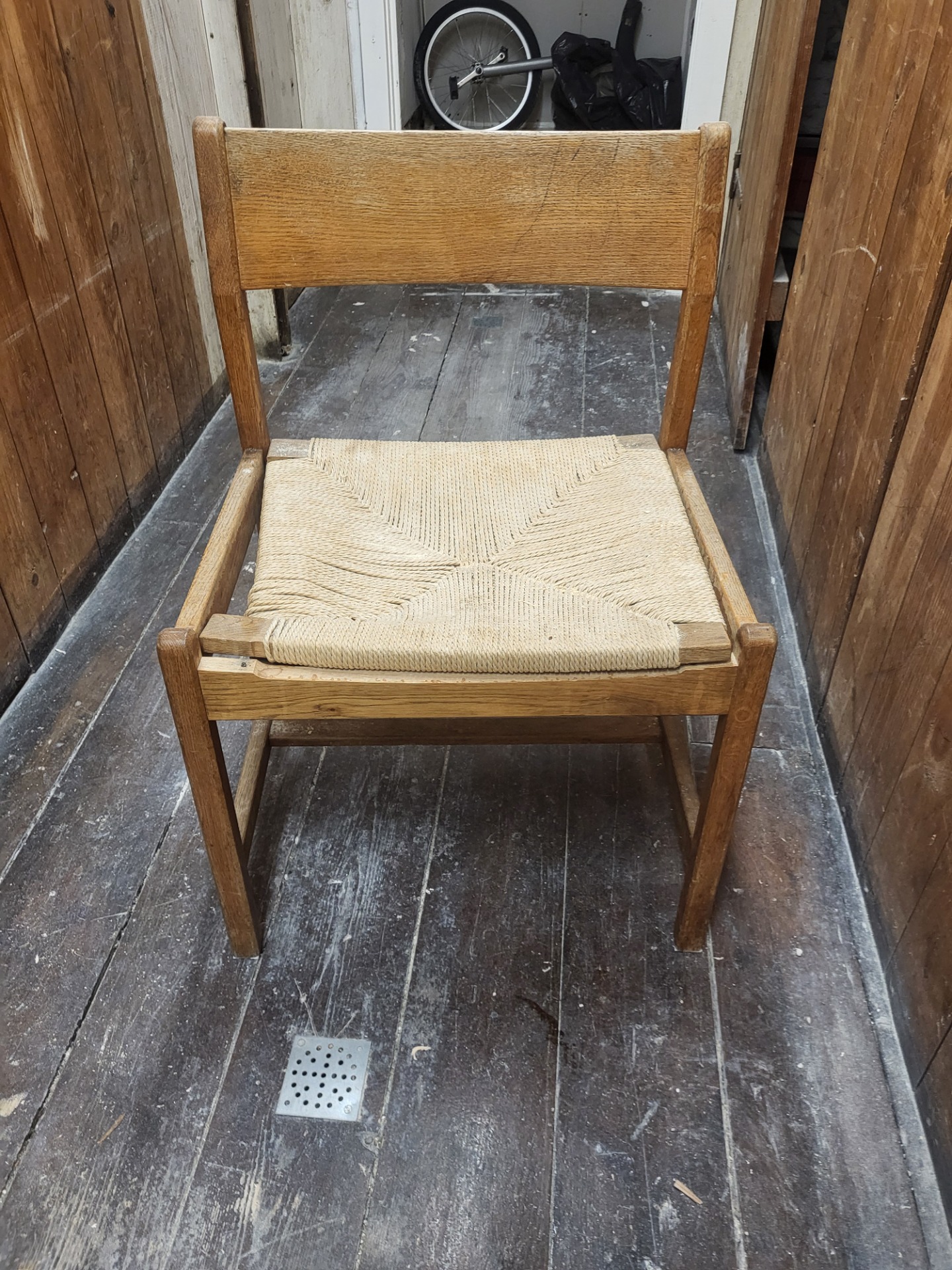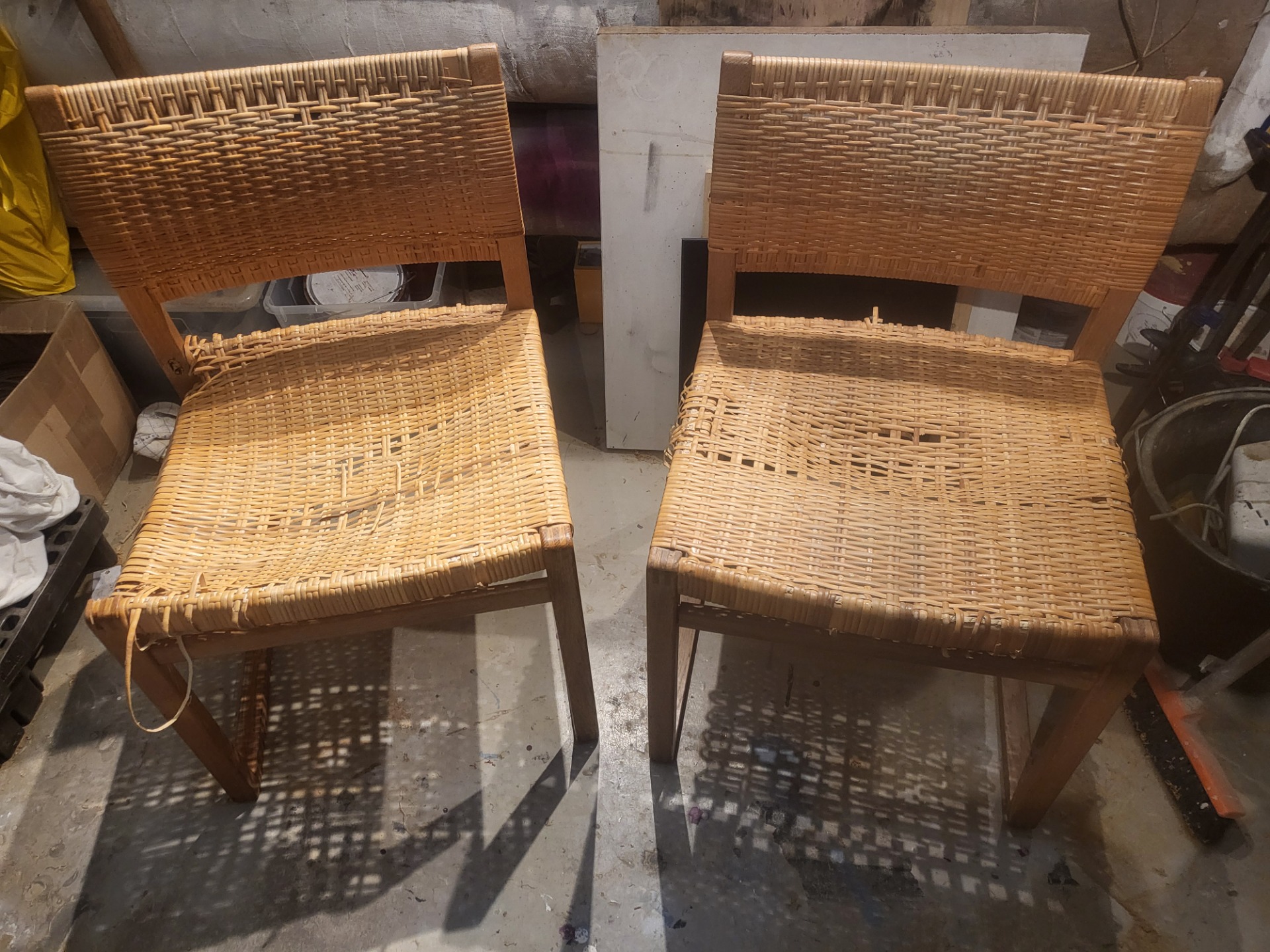 Disse to ikoniske Børge Mogensen stole købte vi af Eva, der havde fundet dem i en storskraldscontainer. Så Eva tjente da en fin skilling og vi fandt et sjovt projekt at springe ud i.